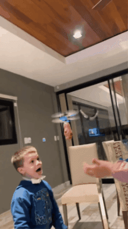 Un juguete único que vuela, flota, brilla en colores LED, y se controla fácilmente con la mano.